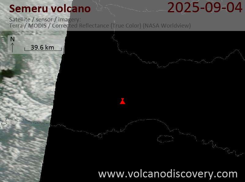 Veröffentlicht am 2025-09-04 von global-affairSemeru Volcano Volcanic Ash Advisory: VA TO FL140 REP AT 04/0228Z MOV SW EST VA DTG: 04/0530Z to 14000 ft (4300 m) Satellite image of Semeru volcano on 4 Sep 2025