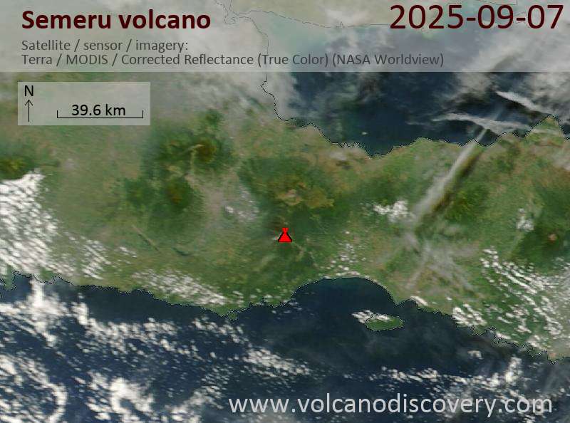 Veröffentlicht am 2025-09-08 von global-affairSemeru Volcano Volcanic Ash Advisory: VA TO FL150 LAST REP AT 07/2243Z EST VA DTG: 07/2243Z to 15000 ft (4600 m) Satellite image of Semeru volcano on 7 Sep 2025