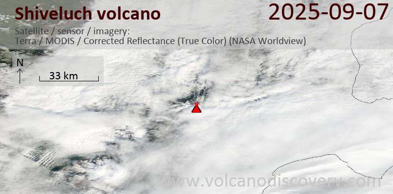 Satellite image of Shiveluch volcano on 7 Sep 2025