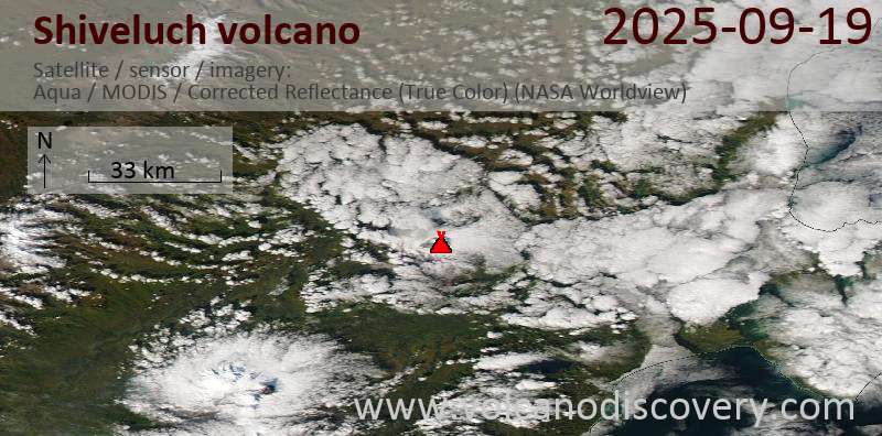 Satellite image of Shiveluch volcano on 20 Sep 2025