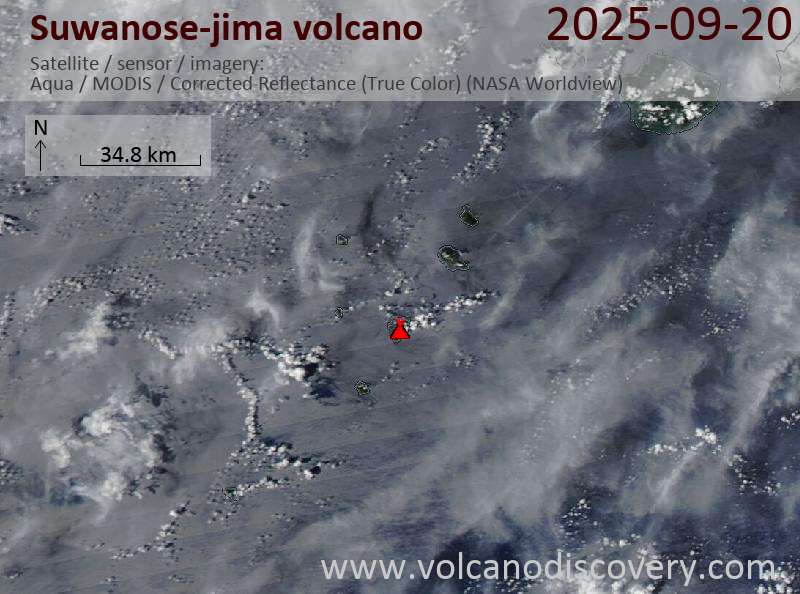 Veröffentlicht am 2025-09-20 von global-affairSuwanose-jima Volcano Volcanic Ash Advisory: ERUPTED AT 20250920/1518Z FL070 EXTD NE OBS VA DTG: 20/1510Z Satellite image of Suwanose-jima volcano on 20 Sep 2025