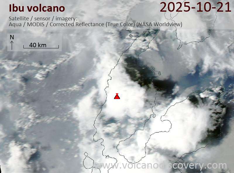 Veröffentlicht am 2025-10-21 von global-affairIbu Volcano Volcanic Ash Advisory: VA REPORTED TO FL060 AT 21/1056Z EST VA DTG: 21/1130Z Satellite image of Ibu volcano on 21 Oct 2025