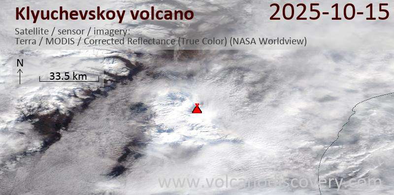 Veröffentlicht am 2025-10-15 von global-affairKlyuchevskoy Volcano Volcanic Ash Advisory: VA EMISSIONS CONTINUING OBS VA DTG: 15/0520Z to 27000 ft (8200 m) Satellite image of Klyuchevskoy volcano on 15 Oct 2025