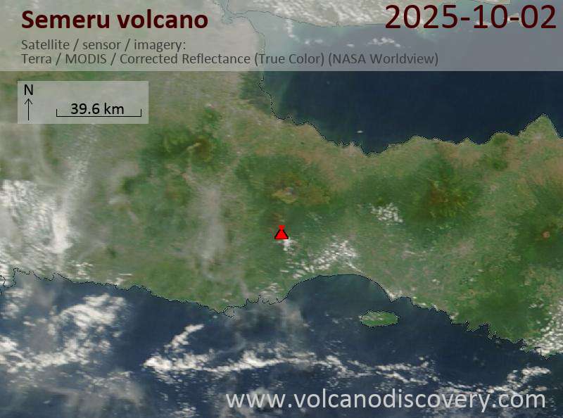 Veröffentlicht am 2025-10-02 von global-affairSemeru Volcano Volcanic Ash Advisory: ERUPTION REPORTED 02/1122Z EST VA DTG: 02/1230Z Satellite image of Semeru volcano on 2 Oct 2025