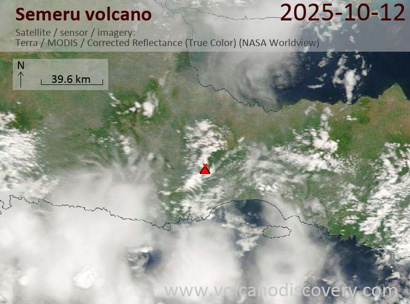 Veröffentlicht am 2025-10-12 von global-affairSemeru Volcano Volcanic Ash Advisory: VA ERUPTION LAST REP AT 11/2225Z EST VA DTG: 12/0340Z Satellite image of Semeru volcano on 12 Oct 2025