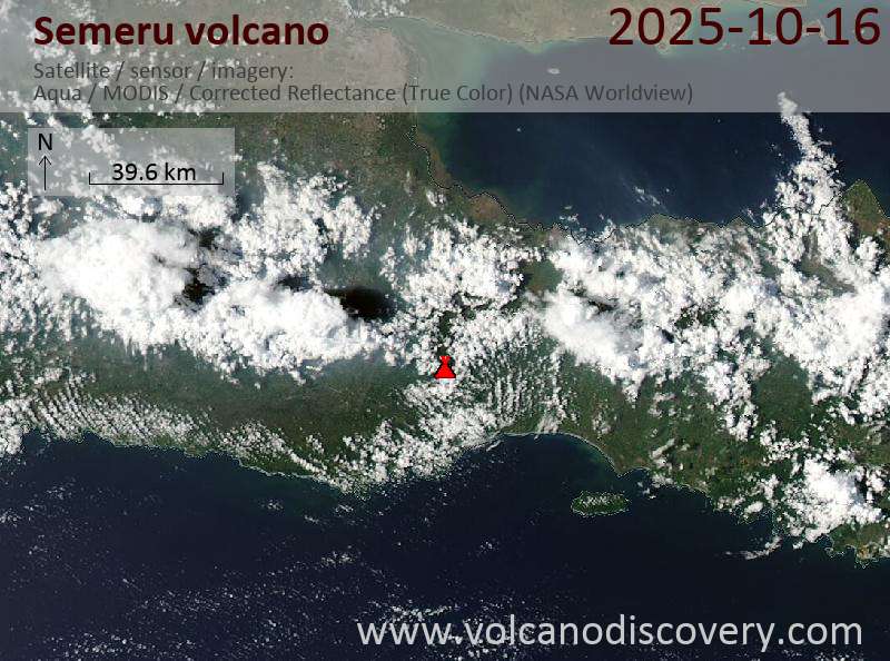 Veröffentlicht am 2025-10-17 von global-affairSemeru Volcano Volcanic Ash Advisory: VA TO FL140 OBS AT 16/2310Z MOV W OBS VA DTG: 16/2310Z to 14000 ft (4300 m) Satellite image of Semeru volcano on 16 Oct 2025