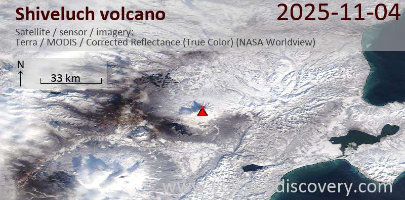 Satellite image of Shiveluch volcano on 4 Nov 2025