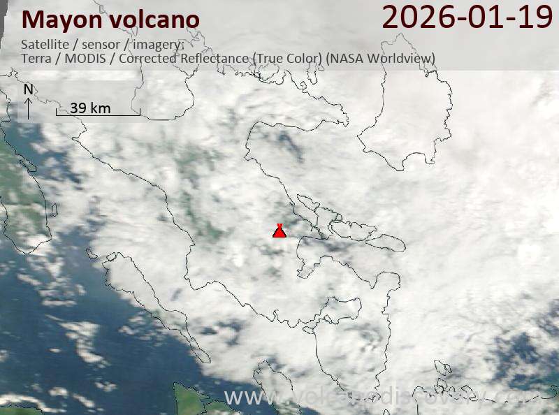 Satellite image of Mayon volcano on 19 Jan 2026