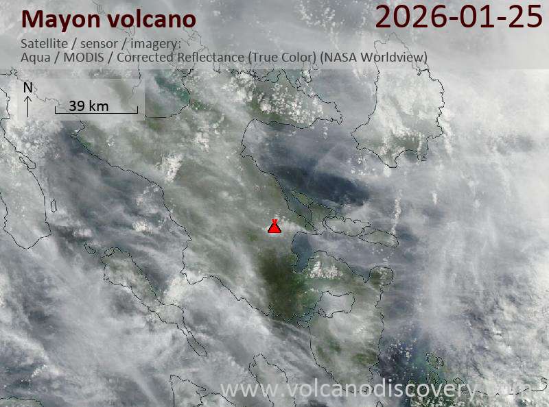 Satellite image of Mayon volcano on 26 Jan 2026