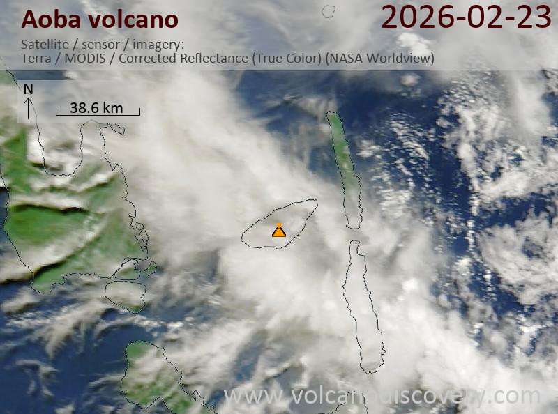 Satellite image of Aoba volcano on 23 Feb 2026