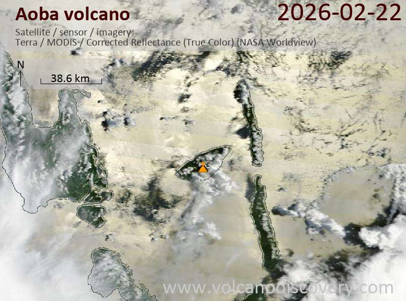 Satellite image of Aoba volcano on 22 Feb 2026