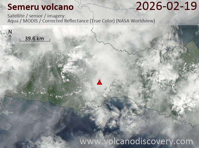 Explosive activity continues. Volcanic Ash Advisory Center (VAAC) Darwin warned about a volcanic ash plume that rose up to estimated 15000 ft (4600 m) altitude or flight level 150 .