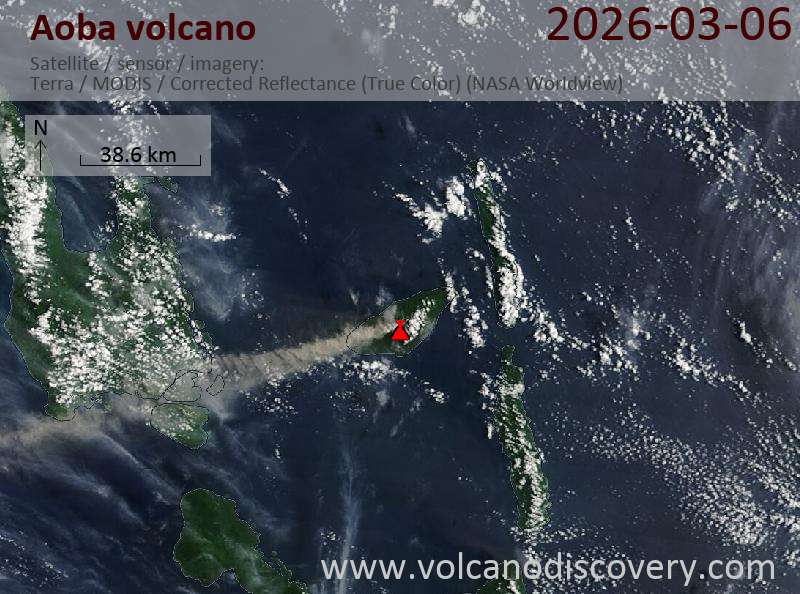 Explosive activity continues. Volcanic Ash Advisory Center (VAAC) Wellington warned about a volcanic ash plume that rose up to estimated 15000 ft (4600 m) altitude or flight level 150 and is moving at 10 kts in NW direction.