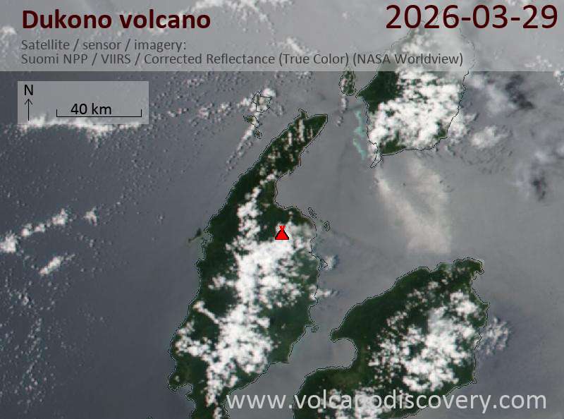Satellite image of Dukono volcano on 29 Mar 2026