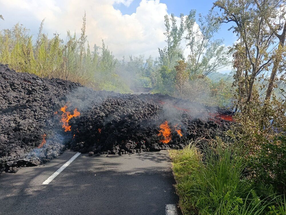 The lava cut the main road yesterday (image: Institut de Physique du Globe de Paris-Volcanological Observatory of Piton de la Fournaise)
