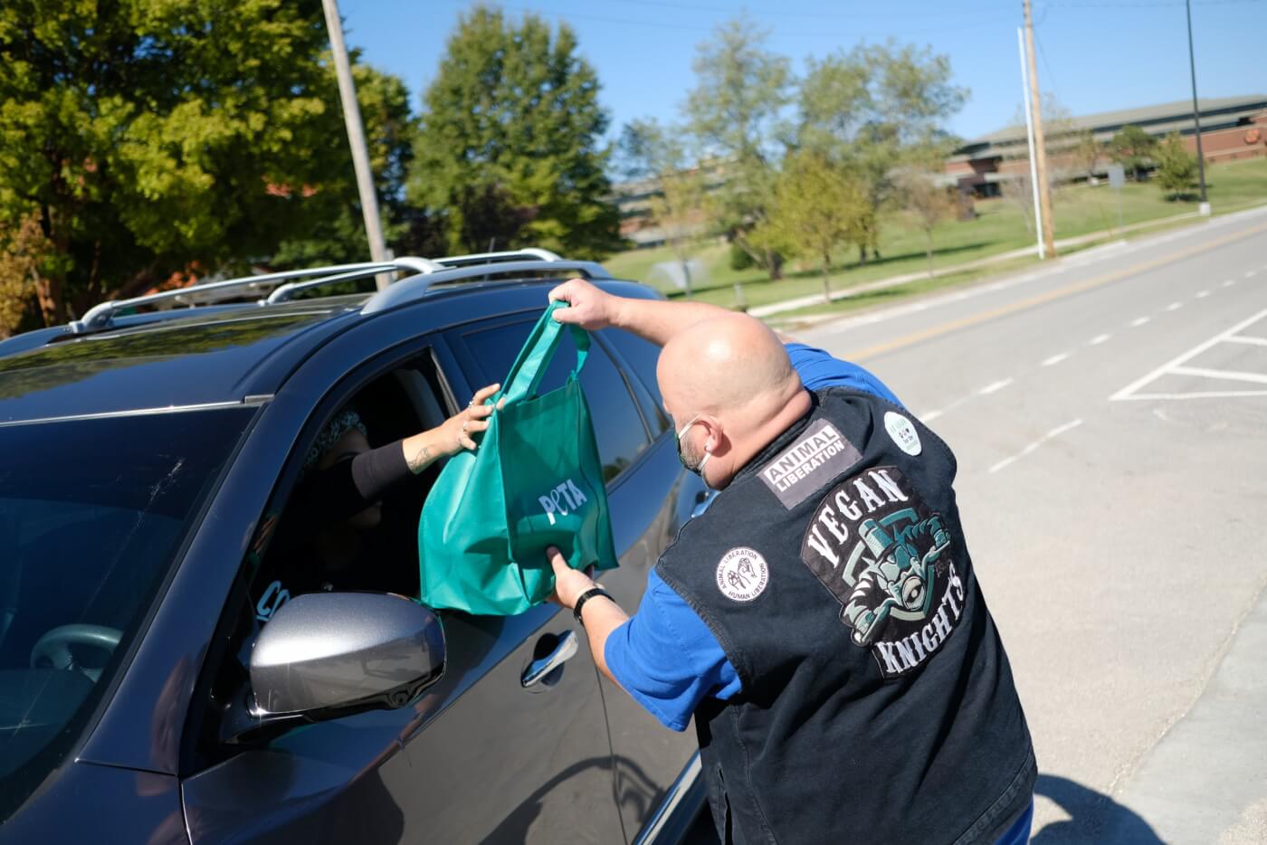 Following the successful launch of our national campaign in Atlanta, PETA is back out there, fighting for food justice one free meal at a time! At an event on October 19, Rev. Dr. Robert Turner and members of the Historic Vernon African Methodist Episcopal Church teamed up with PETA to give away 300 free vegan burgers and bags filled with fresh vegetables, fruit, and other healthy, humane vegan foods. Turner has been a staunch social justice advocate over the course of his career, and now, he’s standing with us to demand better access to nutritious food for the people of Tulsa. We’re urging everyone to join PETA’s new food justice campaign, which calls on government officials to redirect meat, egg, and dairy industry subsidies toward incentives for grocers in food deserts to stock fresh vegetables, fruit, and other healthy, humane vegan foods.