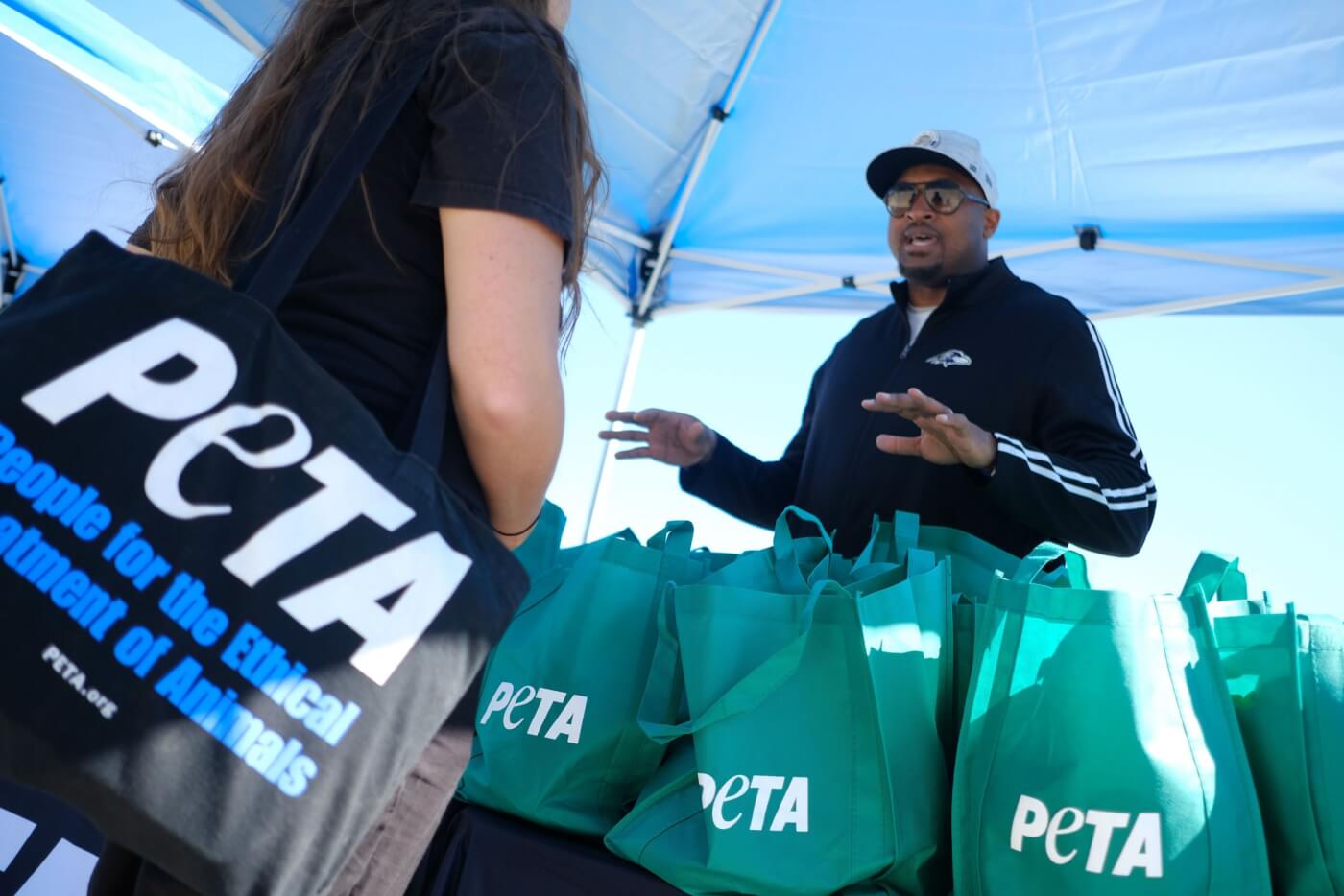 Attendees also scooped up PETA’s free vegan meal starter kits, which include a reusable green grocery bag, an easy go-vegan guide, fresh produce, and more. More giveaways are currently being planned in cities across the country, including Baltimore, Indianapolis, and Los Angeles.